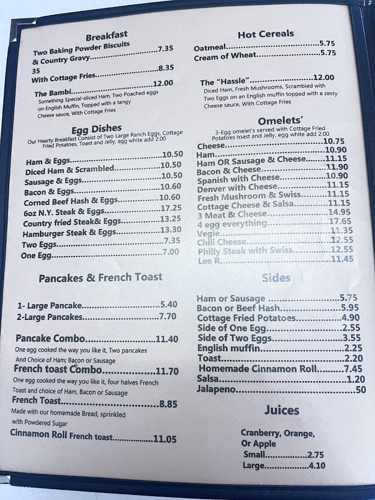El Bambi Cafe's menu celebrates classic diner fare. Breakfast features hearty options like the Denver omelette and French toast. For lunch, patrons can indulge in burgers, sandwiches, or light salads.